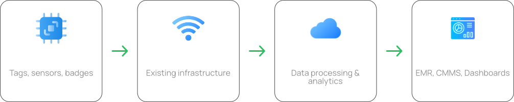 Seamlessly connects with your existing healthcare management systems for unified operational visibility.